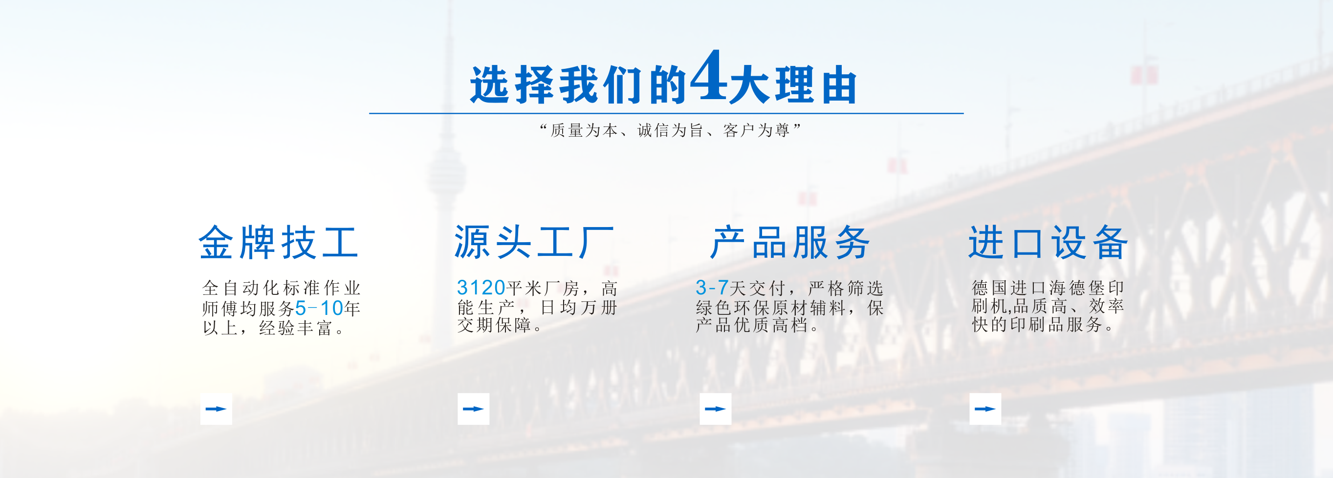 3120平米廠房,嚴格篩選綠色環(huán)保型原材輔料,健全品控流程,完美滿足客戶個性化定制需求,集設計、印刷、裝訂、包裝等一站式服務。